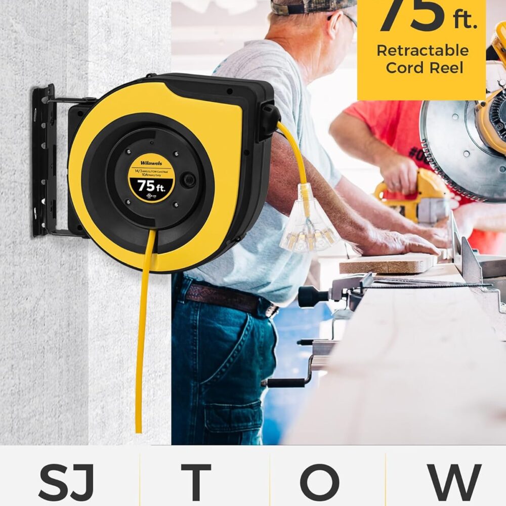 Introducing the Retractable Extension Cord Reel, your ultimate solution for power accessibility and organization. This 75 FT Extension Cord Reel features a robust 14AWG/3C SJTOW heavy-duty power cord, designed to withstand the rigors of both indoor and outdoor use. Equipped with a lighted triple tap, it allows you to power multiple devices simultaneously, ensuring you…