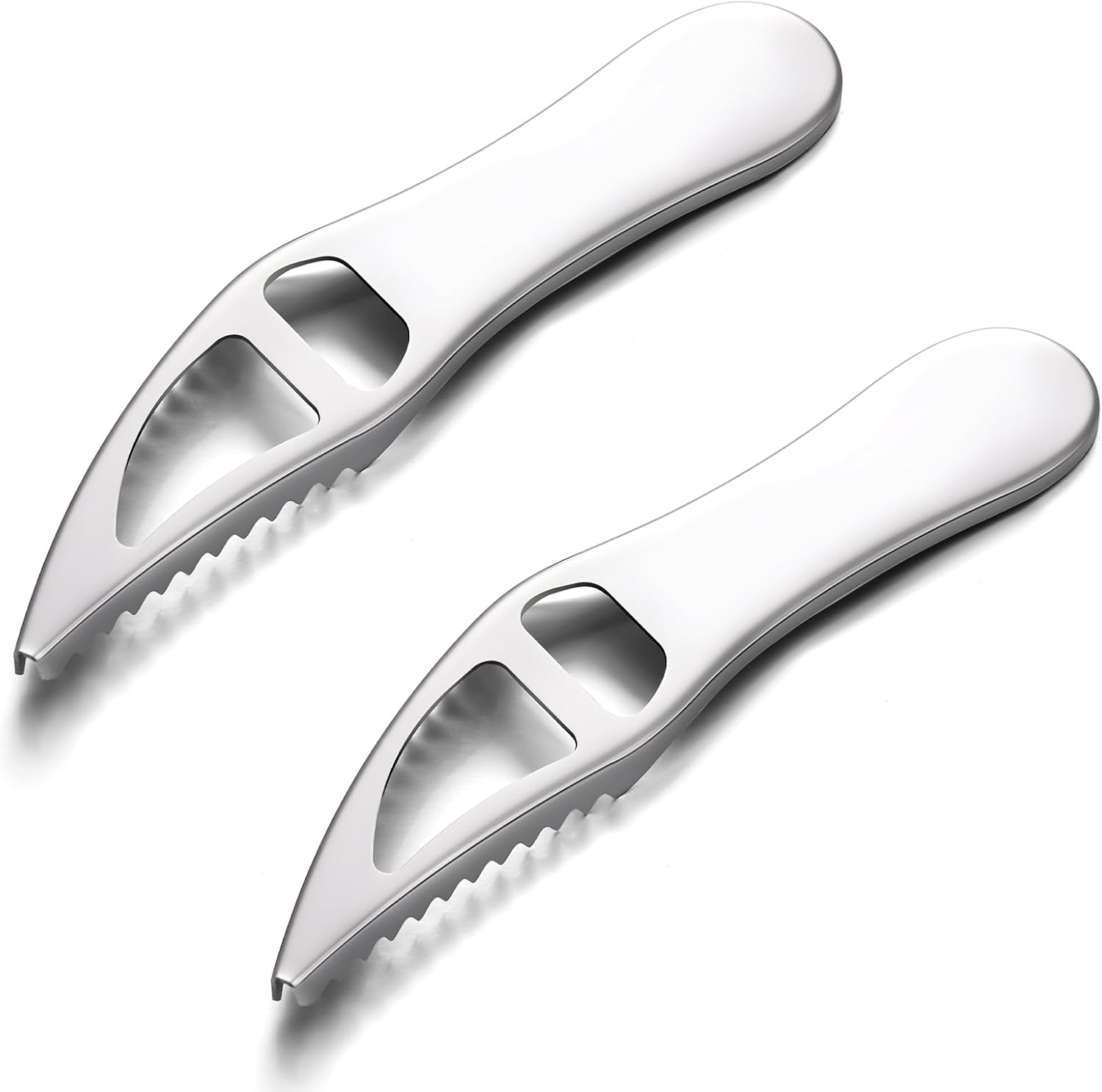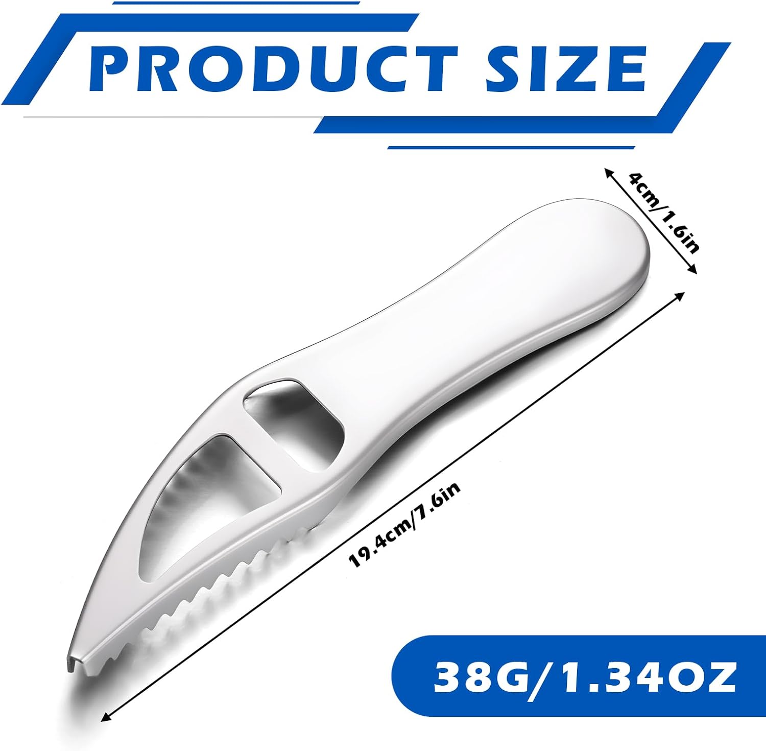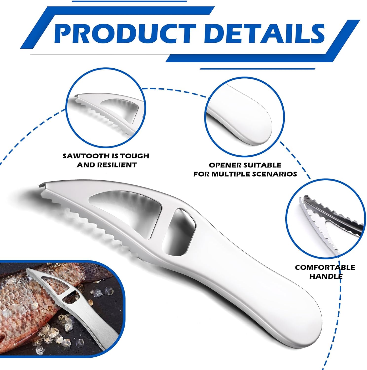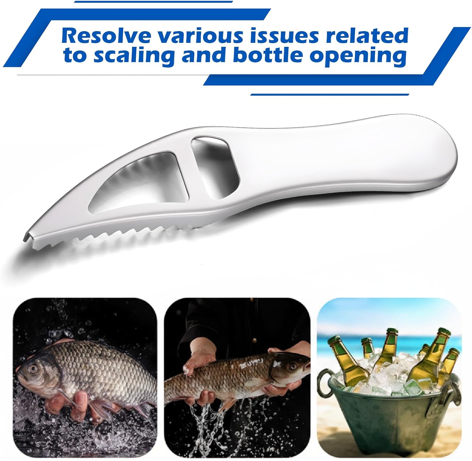 2 Pcs Silver Fish Scaler Remover, Stainless Steel Seafood Cleaning Tools, Portable Fish Scale Scraper with Bottle Opener for Kitchen and Outdoor Use