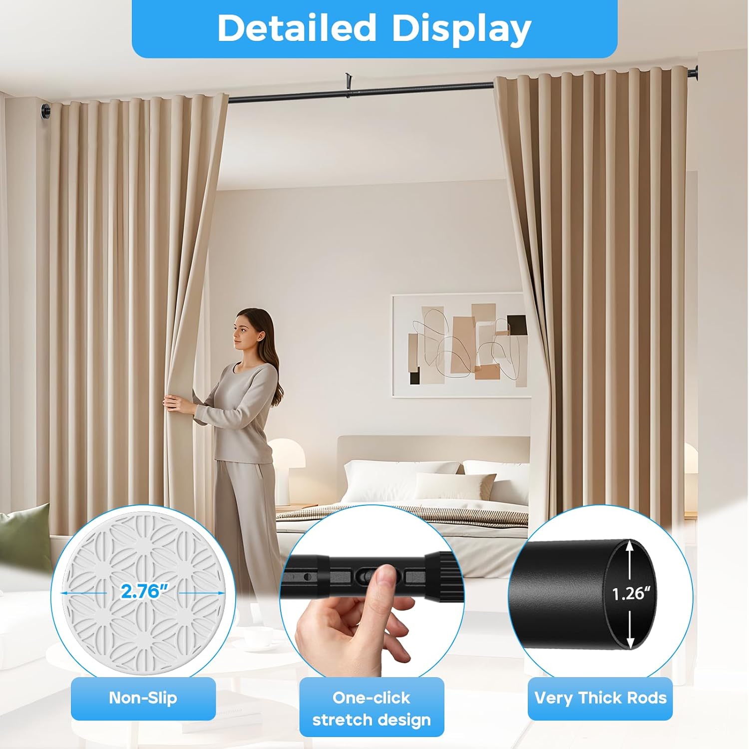 Transform your living space with the AIZESI 41-144 Inch Heavy Duty Black Tension Curtain Rod. Designed for versatility and ease of use, this adjustable curtain rod is perfect for any room in your home, including outdoor areas, living rooms, bathrooms, and windows. The innovative no-drilling installation means you can set it up in minutes without damaging your walls, making it an ideal choice for renters or anyone looking for a hassle-free solution.