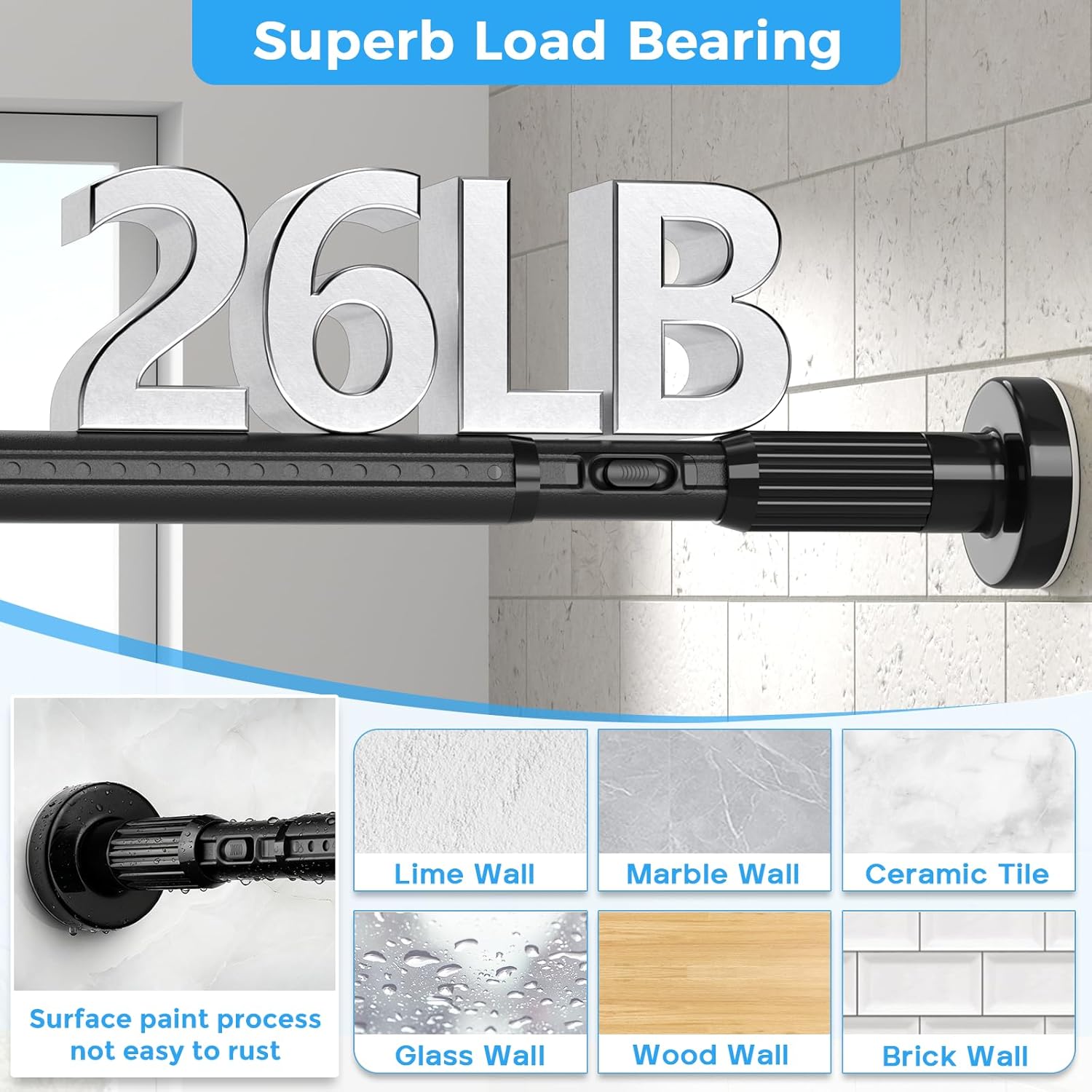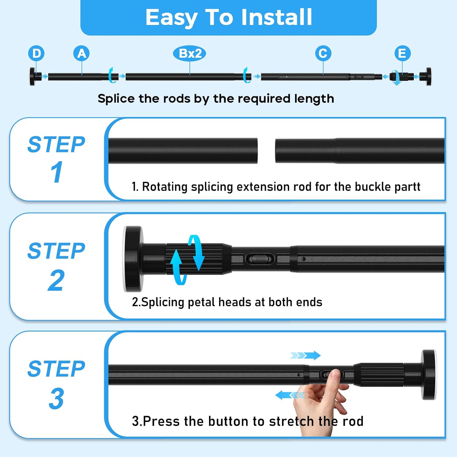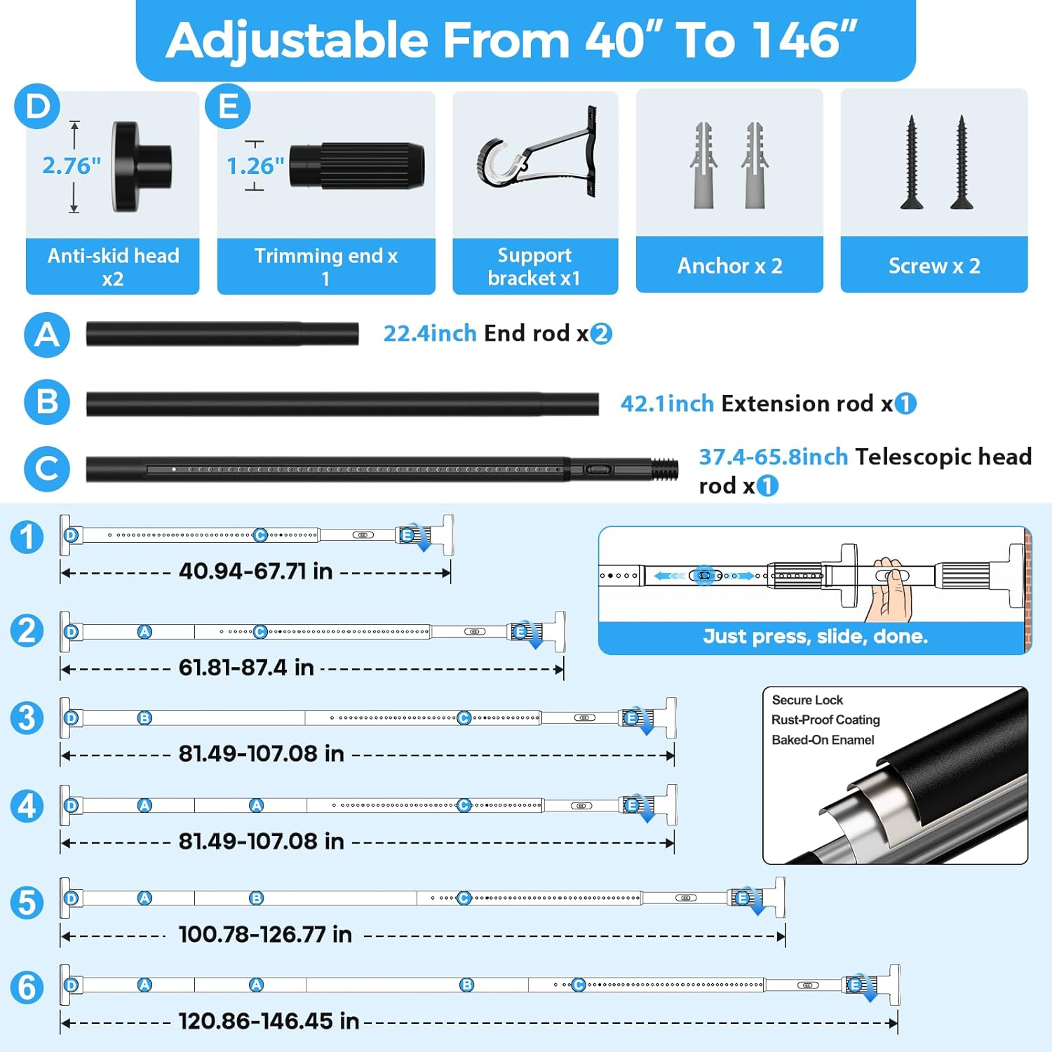 Crafted from high-quality, rust-resistant materials, this tension rod is built to withstand the elements, ensuring durability and longevity. The sleek black finish adds a modern touch to your decor, seamlessly blending with any style. With an adjustable length ranging from 41 to 144 inches, it accommodates a variety of window sizes and configurations.