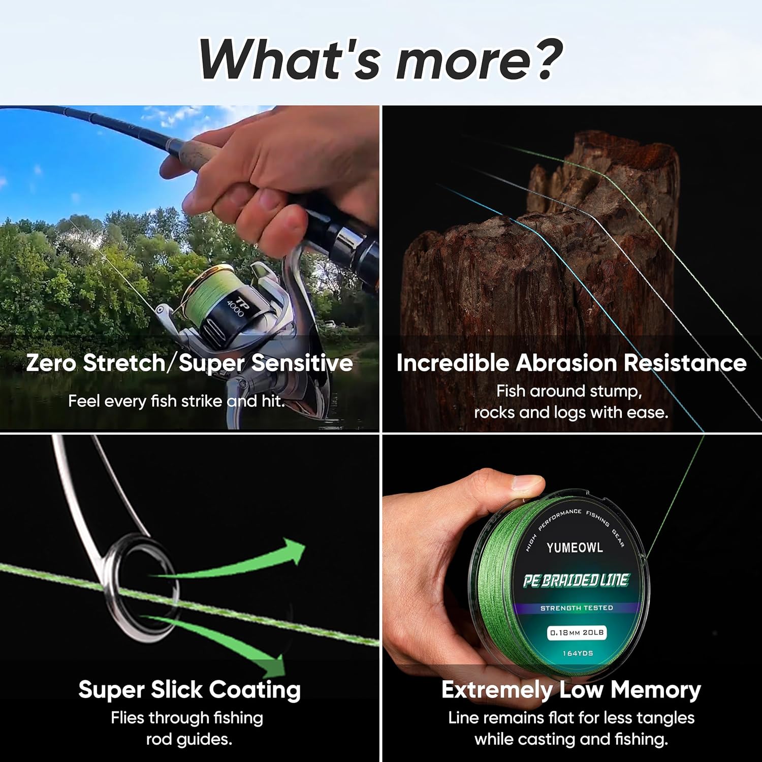 Thinner Braided Fishing Line, Ultra-Strong Abrasion Resistant Zero Stretch Braided Line, 4&8 Strand