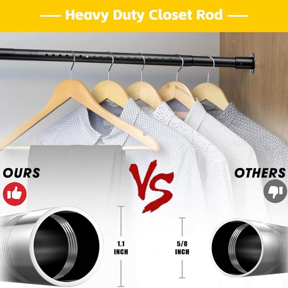 Introducing our versatile Closet Rod, designed to fit any wardrobe with adjustable lengths from 17 to 96 inches. Crafted from heavy-duty metal, this black closet hanging rod is built to withstand the weight of your clothing, ensuring durability and reliability for years to come. Its sleek design not only maximizes your closet space but also…